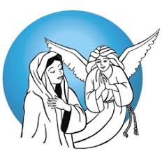 Arcanjo Gabriel e pela Virgem Maria. Diante da pergunta de Maria, o anjo acena