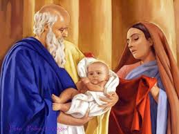 chegada de José e de Maria, que traziam o Menino para sua apresentação no